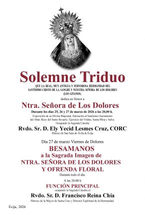 TRIDUO DEDICADO A NUESTRA SEÑORA DE LOS DOLORES 2026.