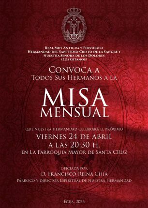 El próximo día 10 de febrero a las 19:45h dará comienzo (D.M.) el Quinario dedicado al Santísimo Cristo de la Sangre. Este año ocupará la sagrada cátedra Rvdo. Sr. Don Jose Antonio Rivera Valderrama, párroco de la de Santa Maria la Blanca de Fuentes de Andalucía y Arcipreste de Écija. El sábado 14 de febrero […]